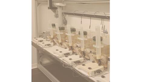 Le plateau comporte un twin SHIME® adulte (2 bras : un pour la substance d'intérêt, l'autre pour le contrôle) et un baby SHIME®.